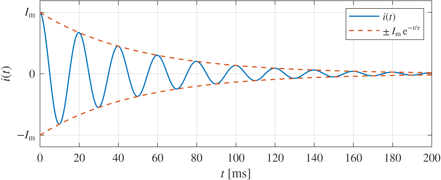 {'$i(t)$', '$\pm\,I_\mathrm{m}\,\mathrm{e}^{-t/\tau}$'}, ...