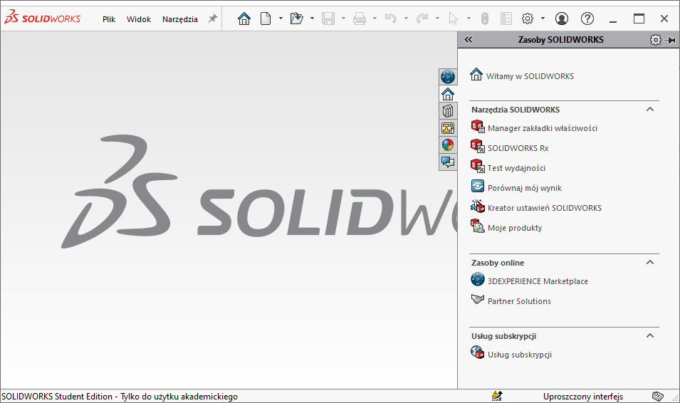 Rys. 3. SolidWorks – główne okno po pierwszym uruchomieniu.