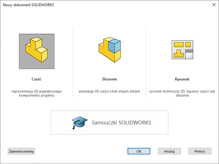 SolidWorks od podstaw: materiały szkoleniowe, ścieżki certyfikacyjne (CSWA, CSWP, CSWE), pierwsze uruchomienie programu oraz procedura zdawania egzaminów.