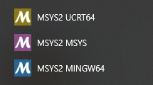 MSYS służy głównie do zarządzania pakietami. MINGW64 i UCRT64 pozwalają budować natywne pliki .exe dla Windowsa. Korzystam z MINGW64, bo jest prostsze od UCRT64 i wystarczające.